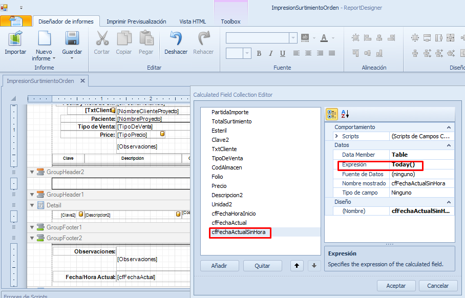 ¿Cómo puedo agregar a mis reportes la fecha actual?