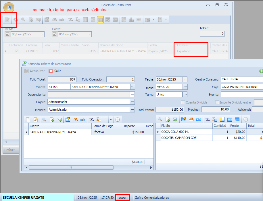 Se tiene un consumo de restaurant que ya fue liquidado, ¿hay alguna forma de cancelarlo sin necesidad de reabrirlo?